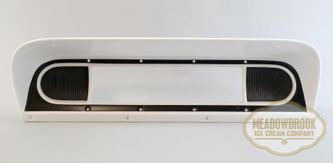 An original Instrument Cluster Bezel for 1967-1969 Ford F250 / Conventional Good Humor Ice Cream Truck. This the only correct bezel for Conventional Good Humor Ice Cream Trucks. There are no variations. It features a glossy white painted finish with original matte black painted details.